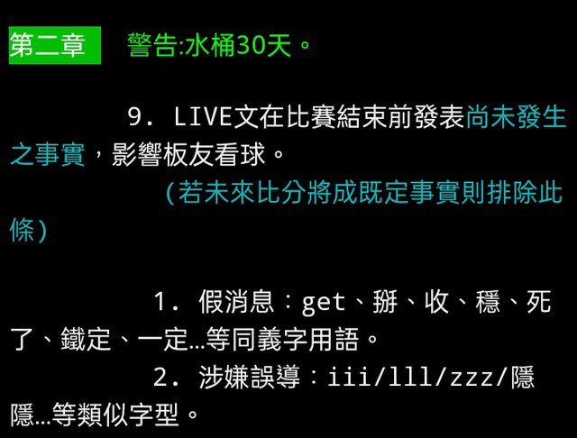 9. LIVE文在比賽結束前發表尚未發生之事實,影響板友看球。