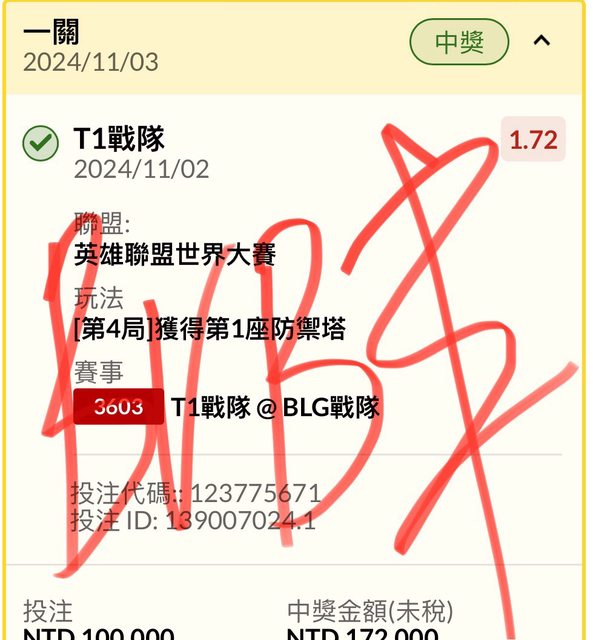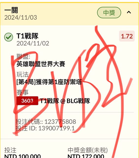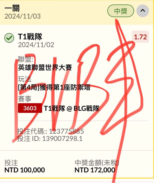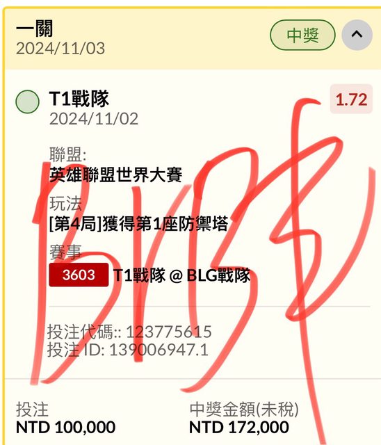 標題Re: [發錢] 電競 T1戰隊@BLG戰隊 場中 3:2