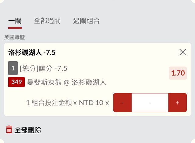 湖人-7.5 1.70 x