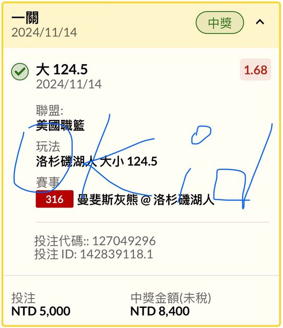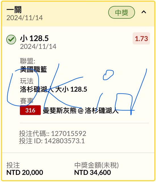 賽前Q1大跟另一張2*1也過 https://i.imgur.com/t1aGWZx.jpeg