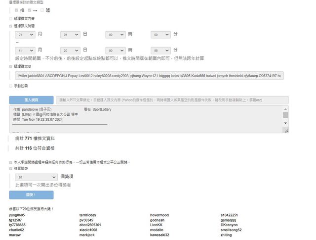 抽 二 十 位 (過濾不包含律師和bv大得獎者)