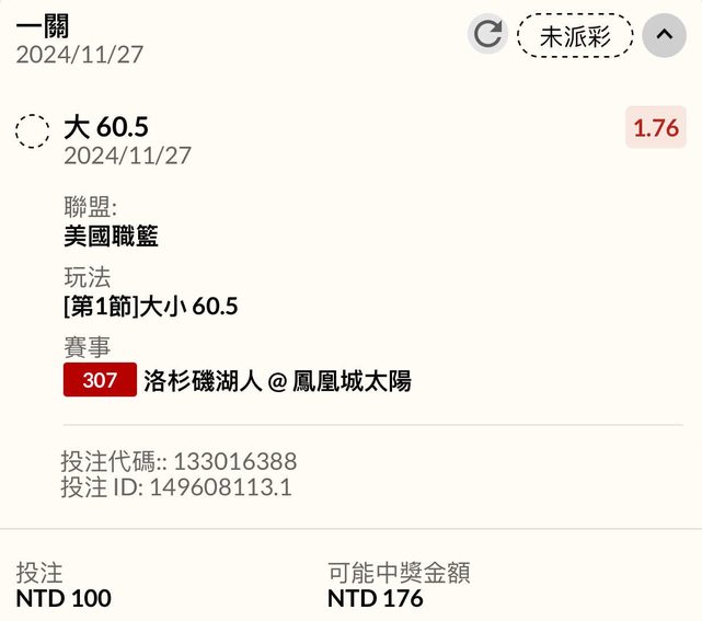 ※ 文章網址: https://ptt-club.com.tw/SportLottery/M.1732667802.A.D2A