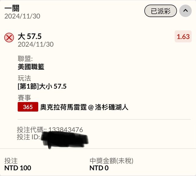 ※ 文章網址: https://ptt-club.com.tw/SportLottery/M.1732934703.A.03C