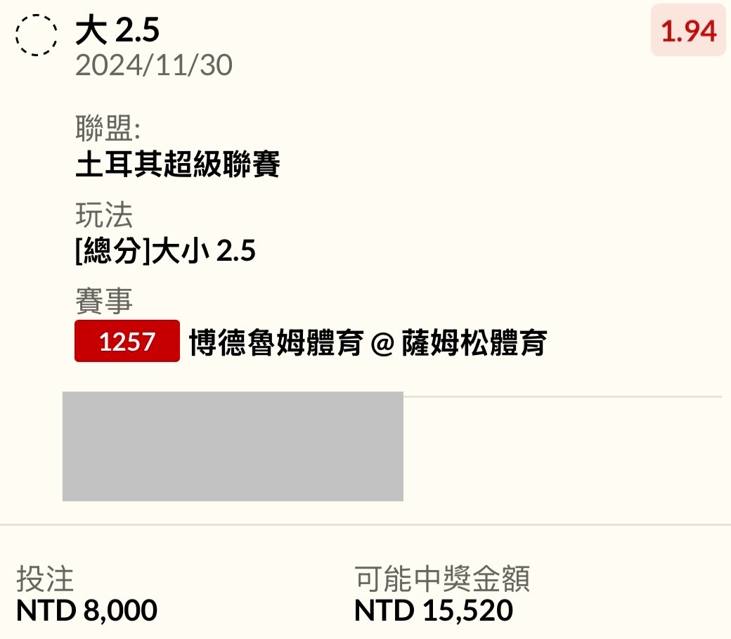 → x86477336: 請問如果買受讓1 對手剛好贏一顆 這樣 123.252.3.123 11/30 18:43