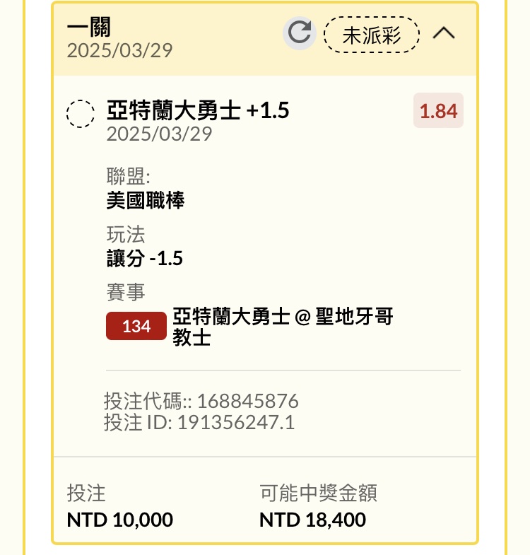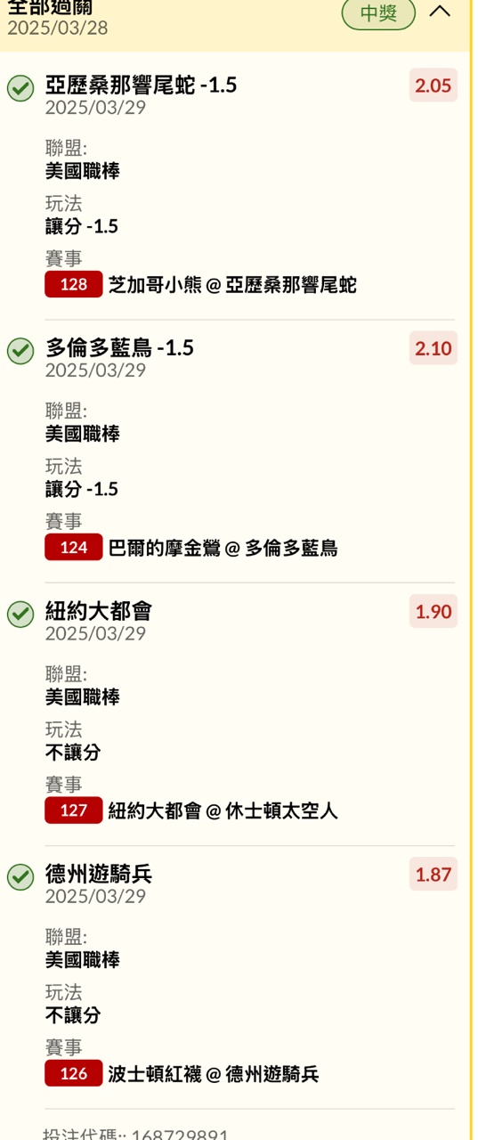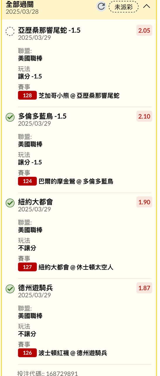 → looks143895: 我買了道奇大分、-1.5 -2.5 被mooki 101.12.162.178 03/29 13:03