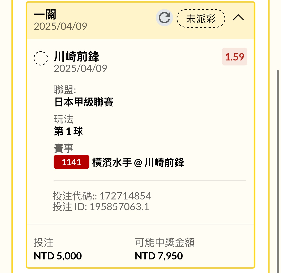 → hebe720330: 賽前買了川崎3+ 61.230.63.78 04/09 18:20