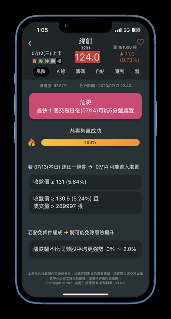 : 處置股的聽牌條件 - 緯創 3231