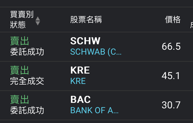 推 PalmAngels : 推個 當初進的SCHW、BAC、KRE都出掉了 有賺有推 07/18 22:50