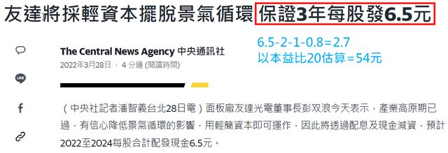 3. 依照彭董原先的承諾,友達明年預計發放2.7元的現金股利~~