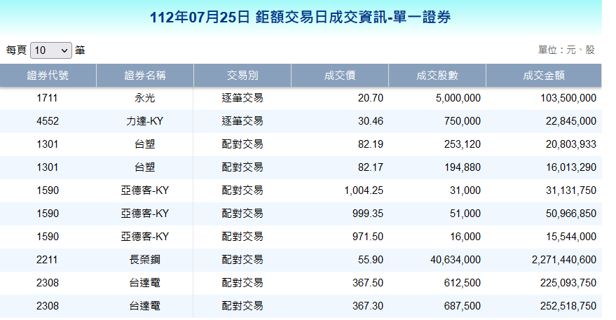 推 Tokoo3535 : 金額跟數量有達標準必須要用鉅額交易 07/25 19:38