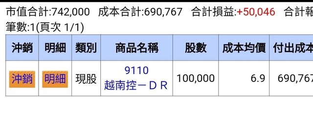 越南控在台發行tdr一股表彰港股2股,在台發行54411張股,