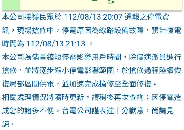 → lokoo : 現在不就小地方跳電擋大規模停電 08/14 00:01