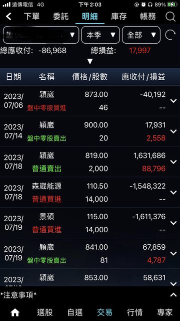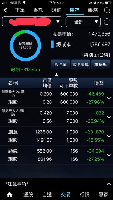 今早賣出後一舉轉正,但因不想買844股湊到一張,就直接買3張,然後賣掉之前高成本的15