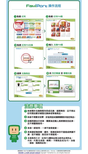 (2)FamiPort機台點選紅利->紅利PIN碼->輸入序號兌換。