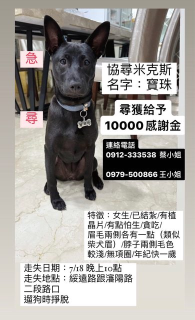 若有資訊或是找到狗狗麻煩直接撥打照片內電話