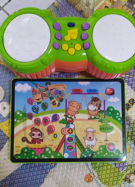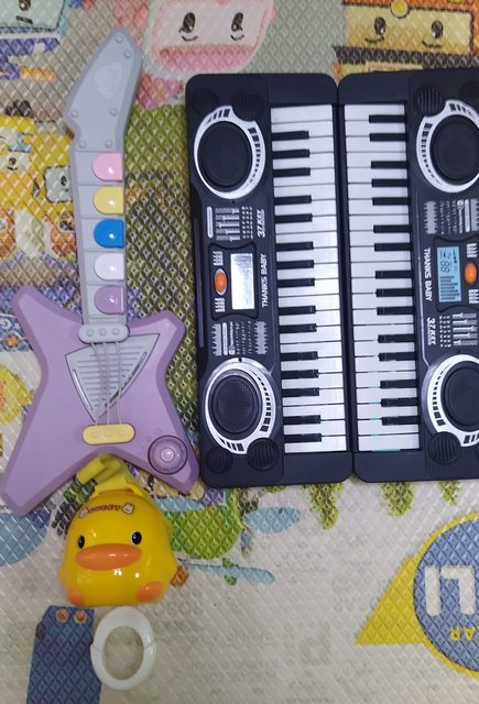 有聲玩具, 平板、吉他疑似快沒電、一台電子琴無電池