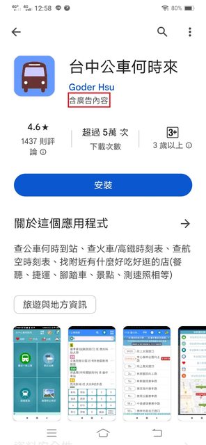 如果真的還是需求手機款APP,建議無廣告的"台中搭公車"(圖片是藍色車身),簡易好用, 還可以查詢昨日或上禮拜的發車時間。