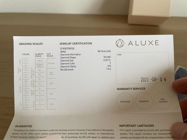 商品配件:保養布、內外盒、保證卡(附盒子)、空白結婚證書(如果您有需要的話)