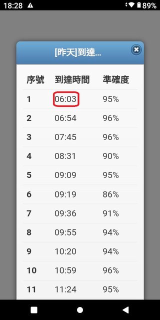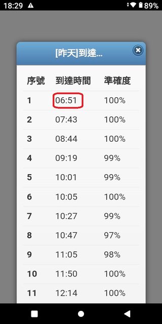 : 的實際到站時間,真的超感謝!