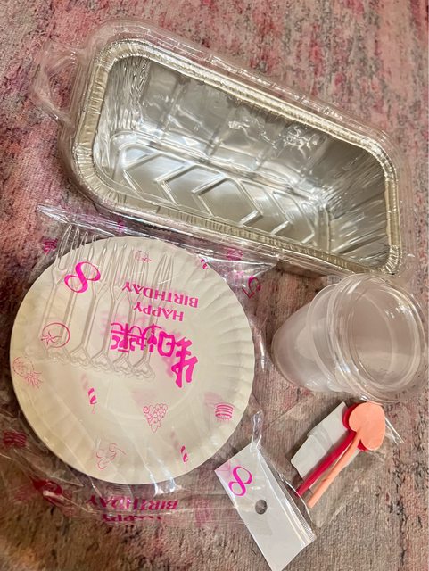 物品名稱:鋁箔盒1個、蛋糕盤叉一組、布丁盒2組、愛心湯匙2個