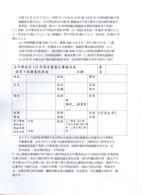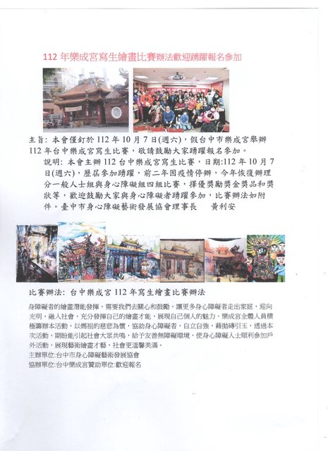 標題[資訊] 台中樂成宮112年寫生繪畫比賽