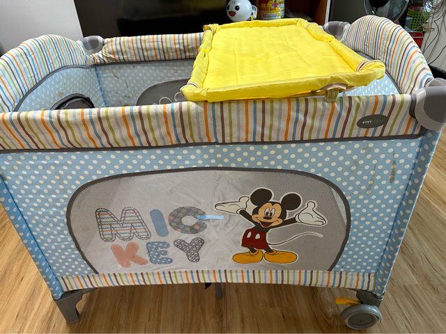 物品說明:遊戲床、附尿布台跟防蚊網,但是裡面遊戲床墊需自行購買,因為被我家2個