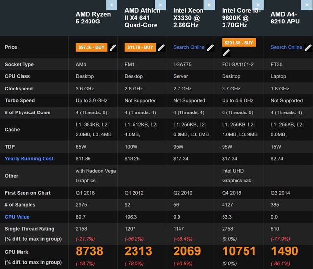 CPU跑分參考: