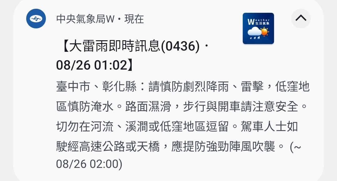 推 tue678 : 10點多 也不是全台中 至少我這是11點才開始打雷 08/26 00:32