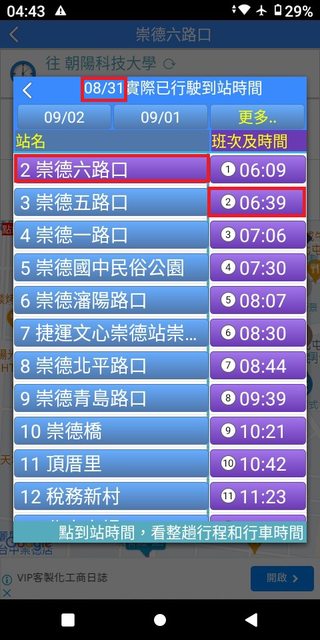 但在35~43分這之間,卻忽視錯過了發車點近在咫尺且6:40穩定發車的132號。