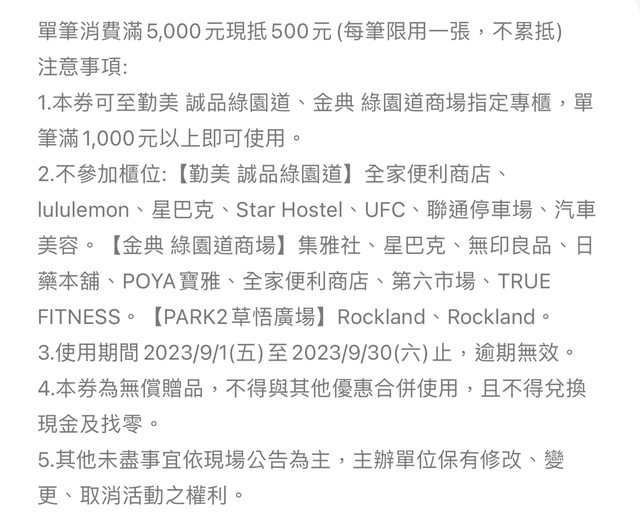 勤美/金典綠園道 滿5000折500購物金
