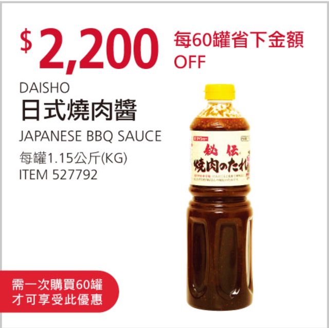 1. 燒肉醬1瓶130元(賣場單瓶159元)
