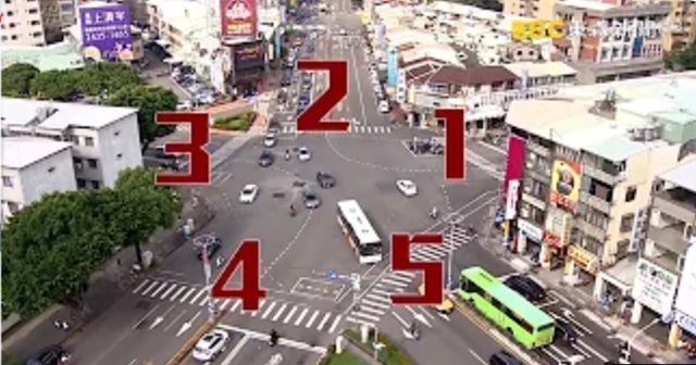 台中一中商圈附近有個被當地稱為魔王級的路口,有五個不對稱的岔路,路線複雜,車流量