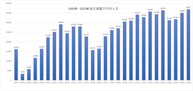 110年5月後每月運量日平均人次統計: