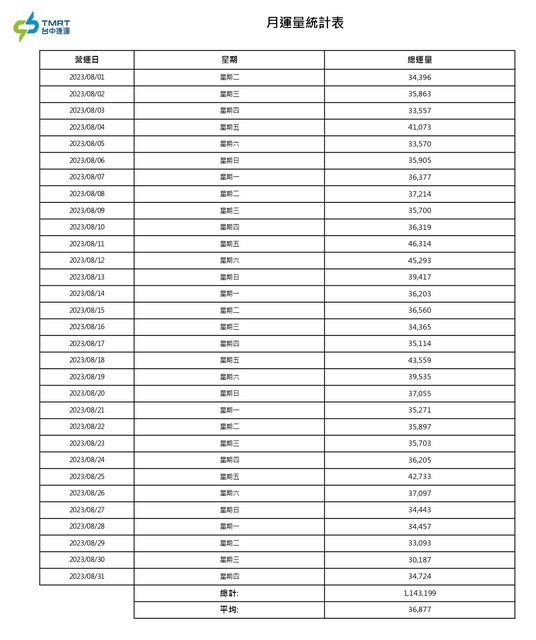 112年8月每日運量統計: