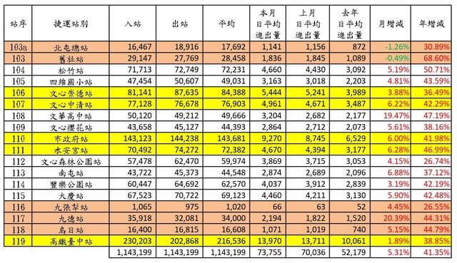5、本文參考 Sunny821210、TaiwanXDman板友高雄捷運各站旅運量的發文格式。