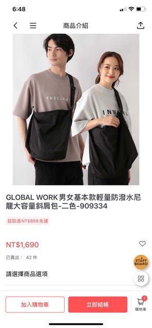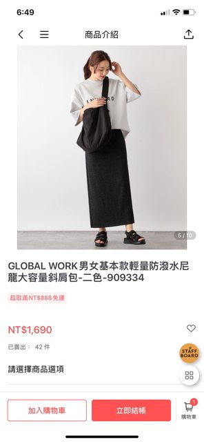 Global work 日本品牌 輕量防撥水尼龍大容量斜背包跟Niko and很類似 搭配很好看 只用過幾次 九成新物況良好 容量超大 也有鑰匙袋隔層很方便 售900元