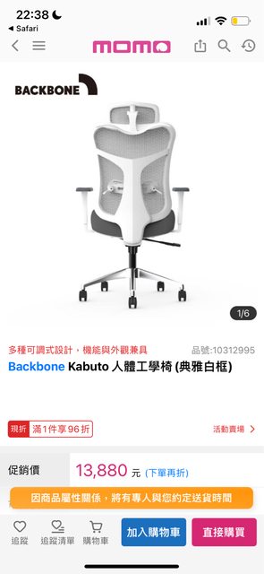 交易類別:出售backbone人體工學椅/電腦椅 kabuto