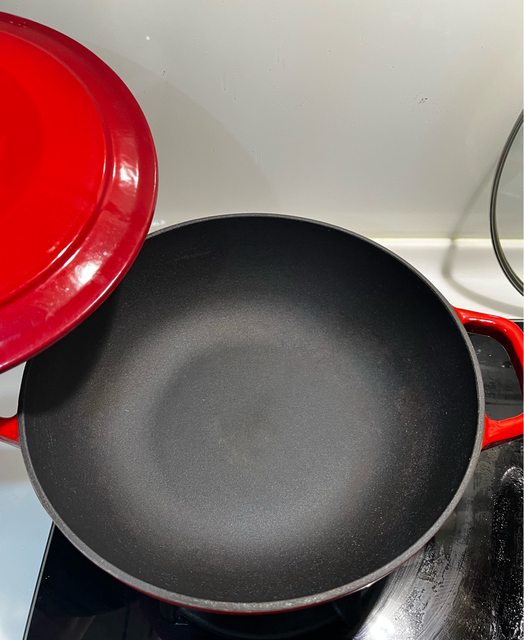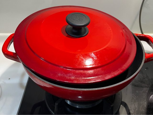 1.摩堤紅色雙耳鑄鐵鍋/900/購買發票留存,適合燉煮節省瓦斯,相關使用方式可以上官