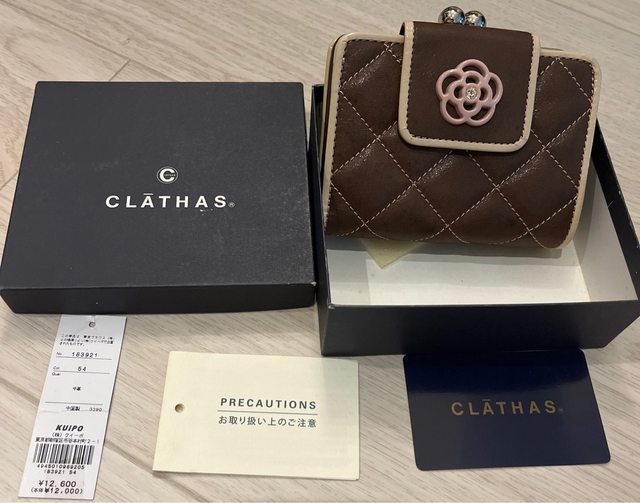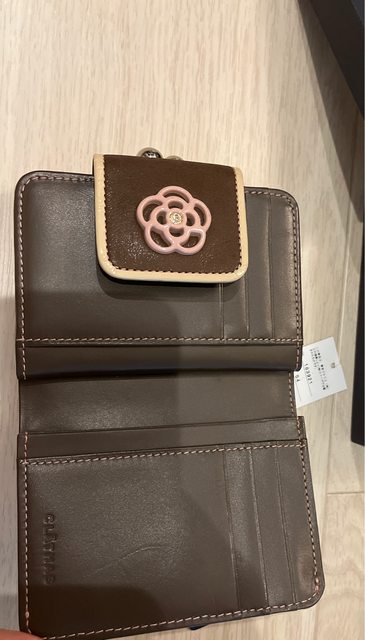 2.clathas山茶花牛皮珠扣短夾/900/二手,吊牌還在,內有多夾層,零錢袋採珠扣,方便