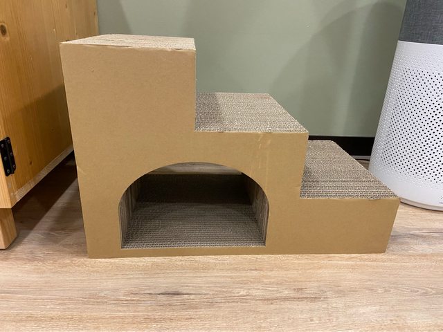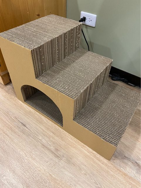 小樓梯貓抓板,下方可穿越,樓梯式也適合老貓上下床使用,材質很堅固。