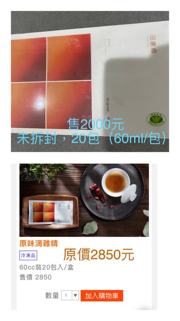 1.田園香滴雞精(冷凍)-原味20包,60ml/包,售2000元