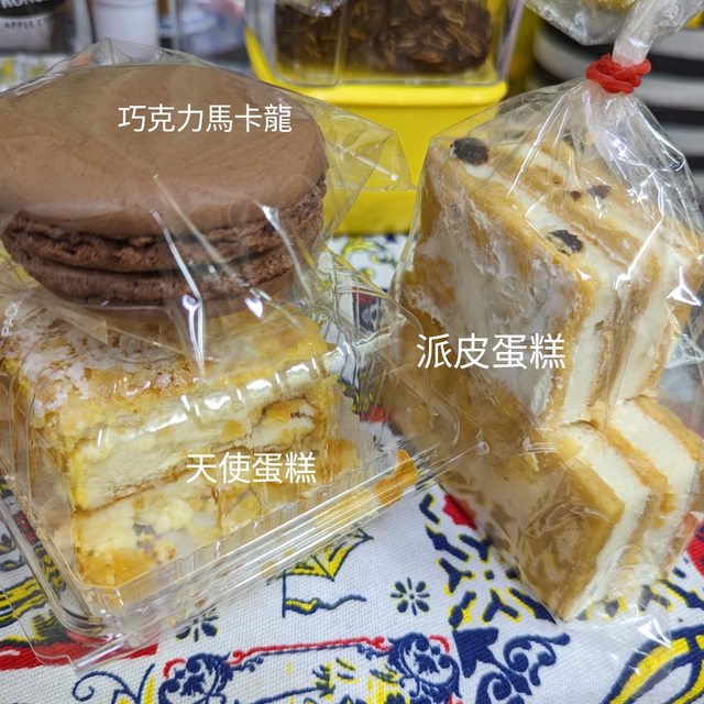 天使蛋糕跟派皮蛋糕都有用刀子切來試吃