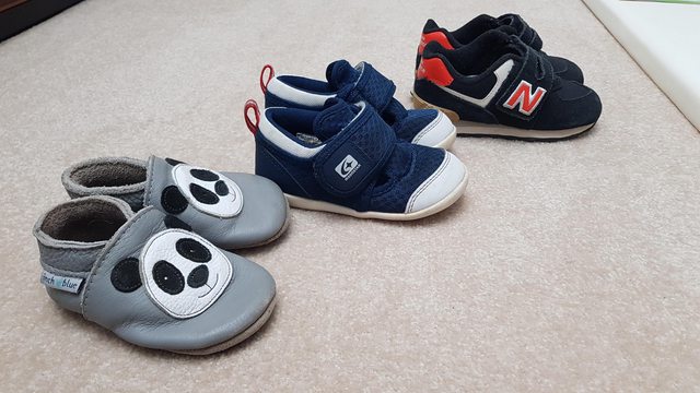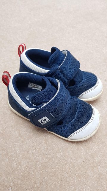 1. 左邊inch blue 12-18M,原價1500,售600,7-8成新,橡膠底因使用染塵變黑,如下方圖片