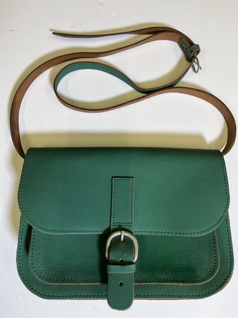 3-3 綠色側背皮革小包,全新
