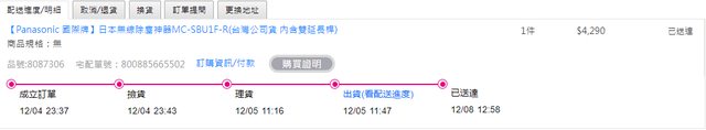 交易物品/金額/說明:Panasonic 國際牌無線吸塵器 MC-SBU1F 紅