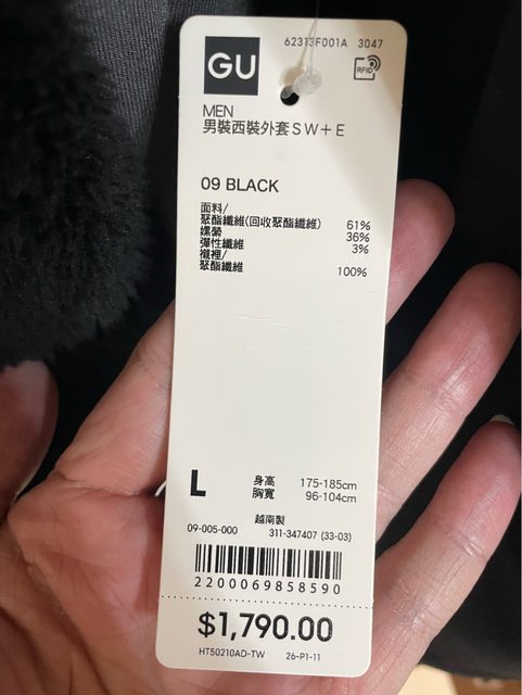 4.GU西裝 僅試穿吊牌未拆 1200$
