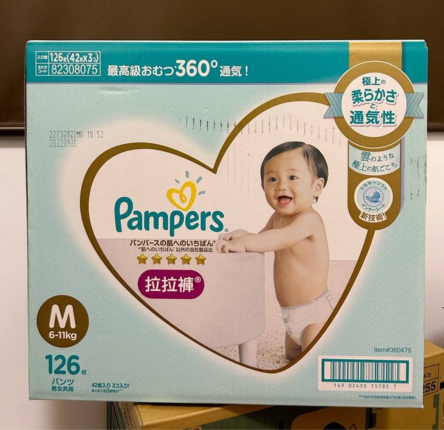 拉拉褲M 126枚/箱,售750元;202209製
