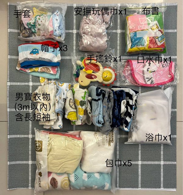 嬰兒衣物(0-3m)、電動擠乳器/集乳瓶;