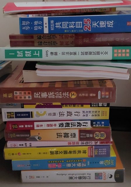 這幾天整理一些國考用書,大部分是司律考試用書及複習講義,其餘少部分是其他考試用