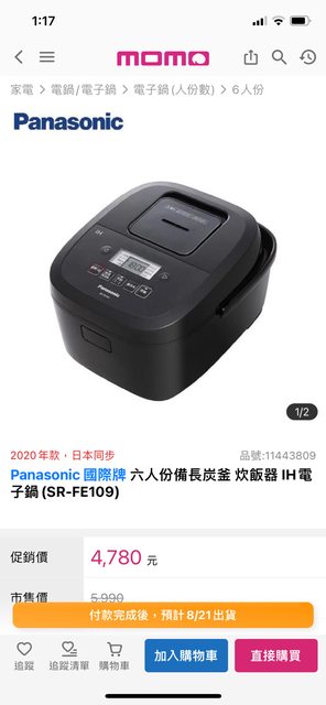 交易物品/金額/說明:(避免誤解請盡量於文內詳細說明):Panasonic 六人份 IH微電腦電